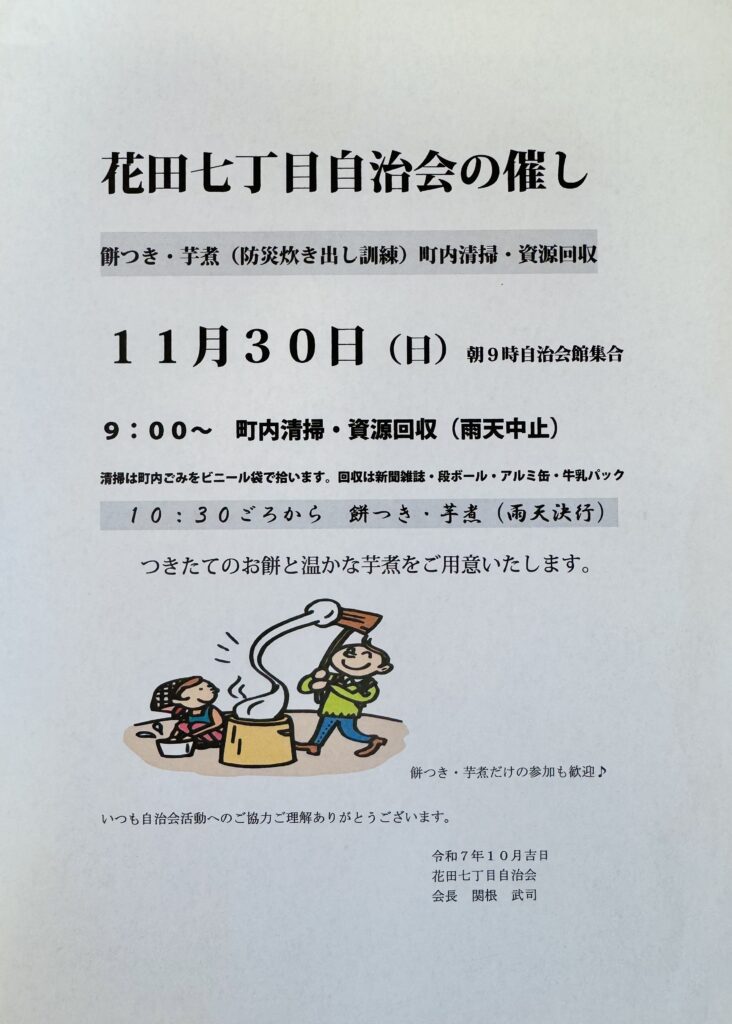 11/30(日) 朝9時より、自治会館にて催しを行います。