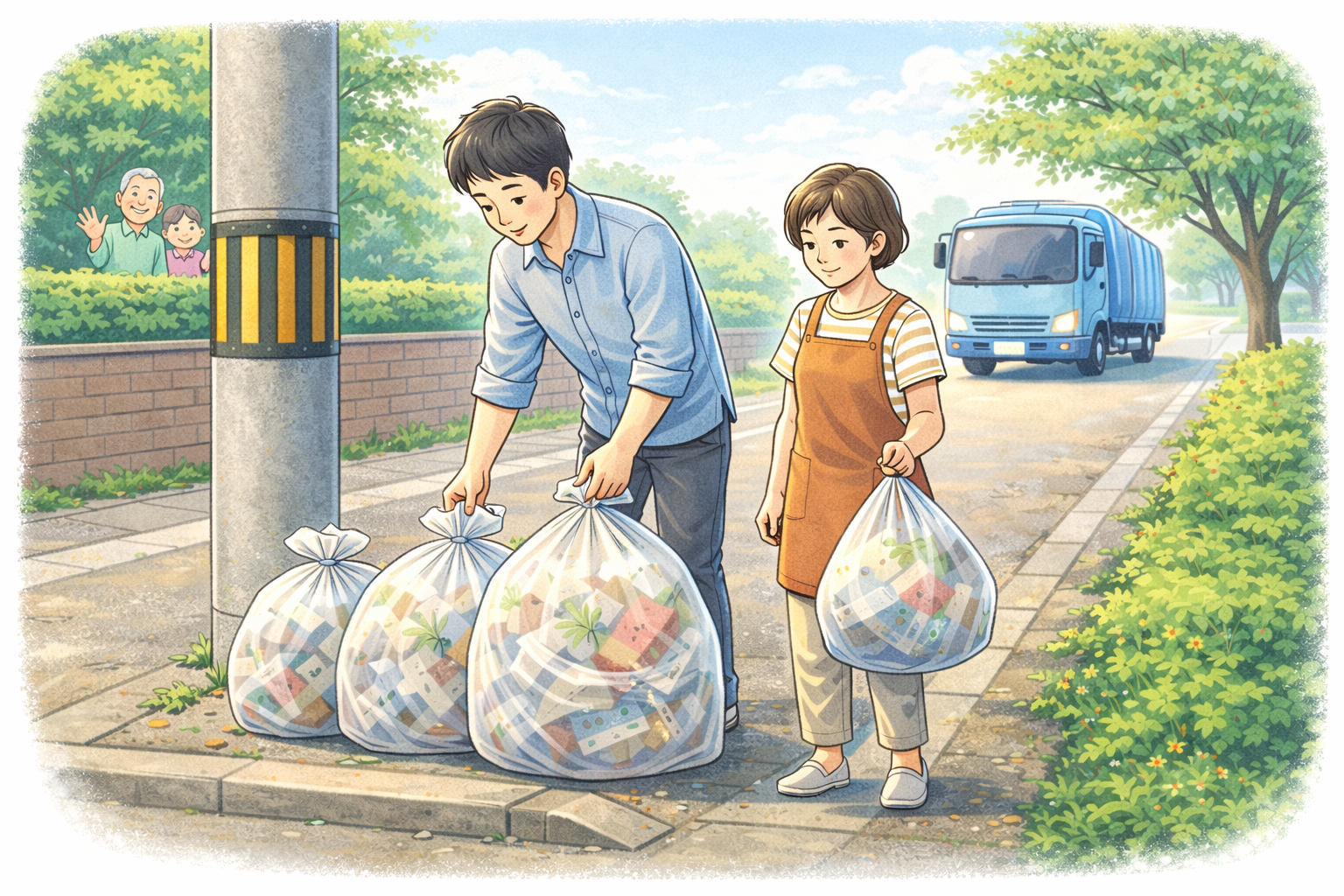 最近、一部のゴミ収集場所で収集日より早くゴミが出されているケースが見受けられます。収集日前にゴミを出すと、カラスや動物による散乱、悪臭の発生、近隣環境の悪化などの原因となります。地域の環境を守るため、ゴミは必ず収集日当日の朝、決められた時間までに出していただきますようお願いいたします。皆さまのご理解とご協力をよろしくお願いいたします。